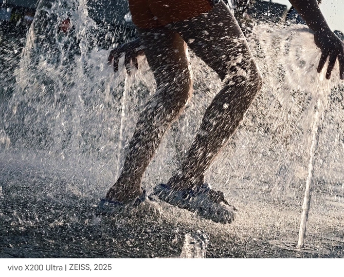 飞溅的水珠如时光碎片,人物脚步踏入这水花世界,记录下平凡场景里因水而生动的瞬间,唤起对夏日小美好回忆 。