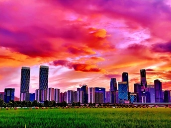 钱江世纪城伴以晚霞,绝色!