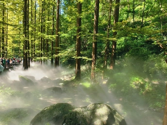樱桃沟位于国家植物园(北园)西北侧,以我国特有的第四纪冰川孑遗植物——水杉林为核心景观。喷雾系统不仅为水杉生长提供适宜湿度,还形成了雾气缭绕的“人间仙境”效果。游客可沿1.5公里木栈道漫步,感受薄雾弥漫、溪流潺潺的自然野趣,夏季气温较市区低5-6℃,是避暑胜地。 2025年暑期开放安排 根据最新公告,喷雾开放时间调整为: 时段:每周二、四、六、日上午9:00-10:00(原仅周末开放)。 日期范围:7月8日至8月31日,覆盖整个暑期高温期。