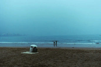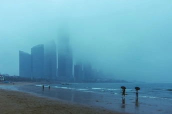 雾是海写给天空的朦胧诗,伞是你留给自己的温柔锚点。别害怕眼前的模糊,海浪会带走沙滩的脚印,时间也会带走你的烦恼。你只需坐在这方小天地里,听风、看海、等雾散,等自己重新变得轻盈,然后带着海的辽阔,继续爱这烟火人间。