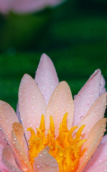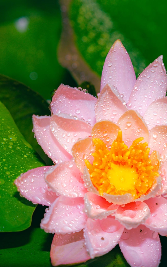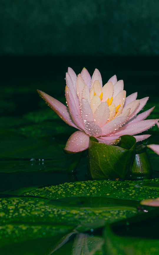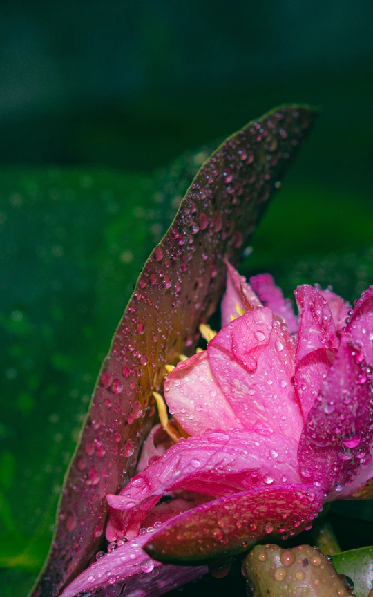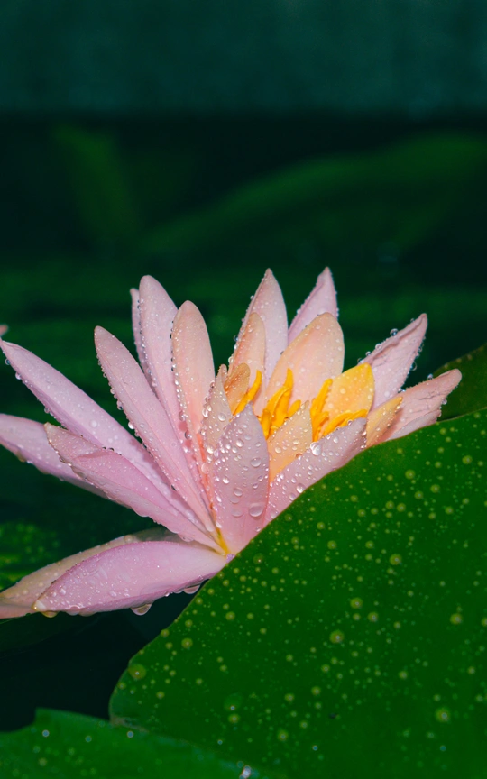 雨珠轻吻睡莲,颗颗滑落,似灵动音符;睡莲悄然绽放,粉瓣舒展,如娇羞仙子于碧盘之上舞着梦幻绮歌。