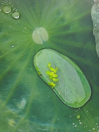 水洼舀来半阙夏的呼吸, 新绿正从镜底泅渡而出, 把月光吻过的骨血, 碎成星子,缀满叶脉的掌纹里。