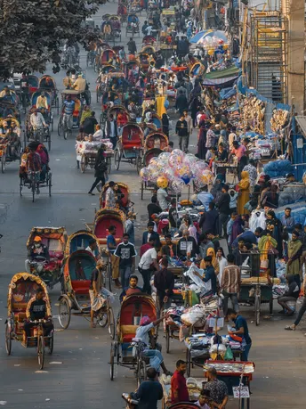 孟加拉首都达卡,世界上为数不多的三轮车会堵车的地方之一。