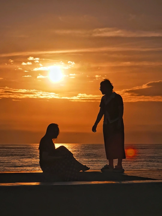 东海岸堤坝上,日出。
