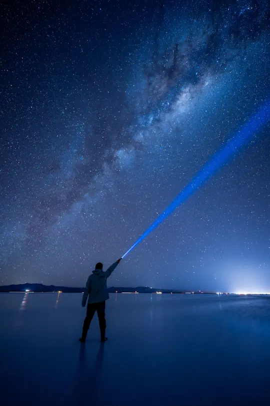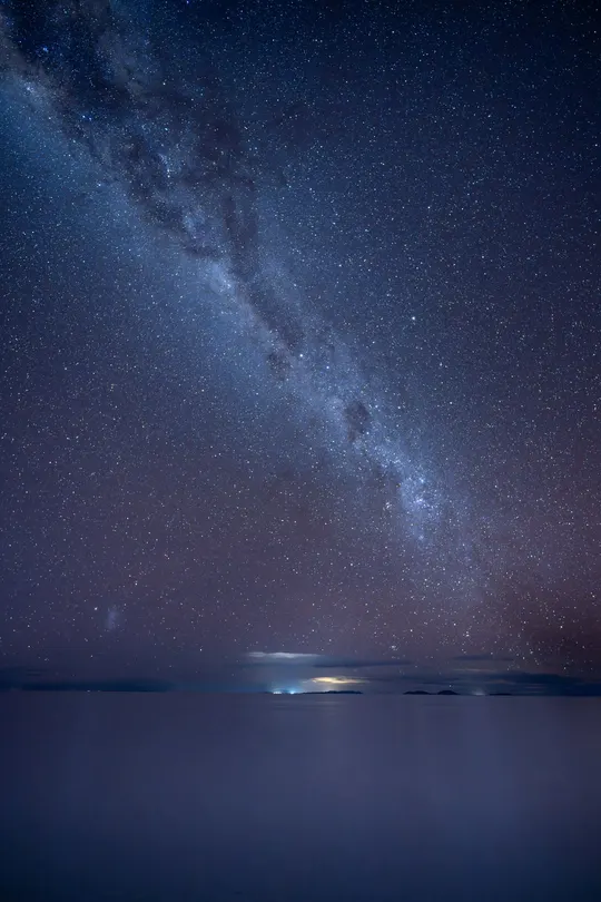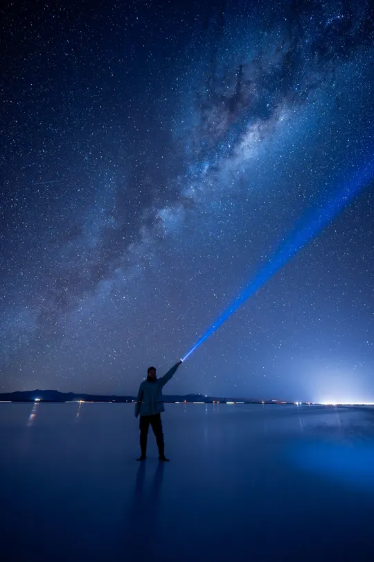在乌尤尼的夜晚, 世界像被洗净了一切杂质, 只剩无尽的星河与清澈的倒影。 银河从天边缓缓倾泻, 星辰在脚下绽放, 仿佛脚步踩在宇宙之上, 每一步都踏进光年的深处。 风声是宇宙的低语, 寒意提醒着我此刻的真实, 而这片“天空之镜”, 让人分不清是仰望星空, 还是俯视浩瀚的宇宙。 🌌