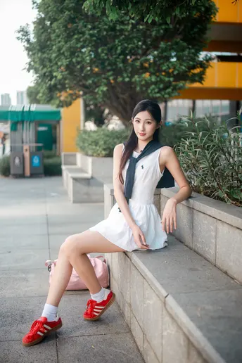 青春校园女主穿搭模版? 直接抄作业 白色无袖连衣裙+搭肩小披肩 红色运动鞋活力点睛? 在校园小路随手拍 每一帧都像青春电影里的画面 简单又出片的校园风穿搭 快存图学起来✨ #校园穿搭 #青春风 #穿搭分享 #日常出片