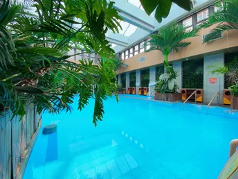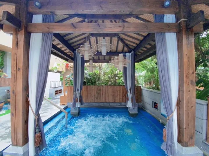 在这儿找到了放松的宝藏地💦 室内泳池清澈湛蓝,被绿植环绕,游完泳钻进木质凉亭的泡池,水流轻晃超惬意🌿 还有那古朴的泡缸,流水潺潺,泡着能把疲惫都泡没~在这待一天,身心都被温柔拿捏,太适合给自己充充电啦✨ 。