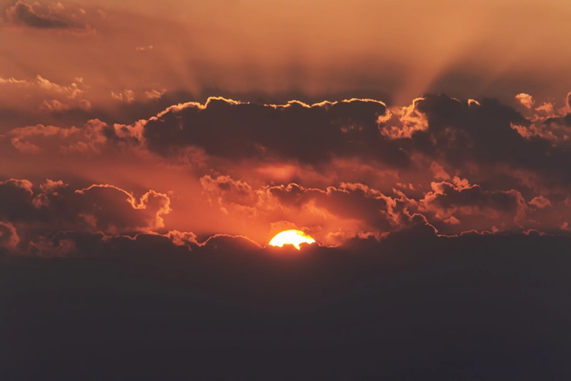 《落日熔金:云层间的诗意光影》 这幅落日景象的摄影作品,宛如一首无声的诗,以独特的艺术语言诉说着自然的壮美与温柔。 构图上,画面以厚重的云层为框架,将落日稳稳地置于中心位置。云层的层次丰富,从近处的深沉到远处的朦胧,形成了一种由近及远的纵深感,引导观者的视线聚焦于那轮闪耀的落日,构图简洁却极具张力。 色彩方面,落日散发的橙红色光芒与深灰色的云层形成鲜明对比。橙红温暖而明亮,似燃烧的火焰,给人以热烈的视觉冲击;深灰的云层则沉稳而压抑,两者相互映衬,营造出一种既壮丽又略带沧桑的氛围。 情感上,画面传递出一种宁静而又深沉的韵味。落日象征着一天的结束,云层的厚重仿佛承载着岁月的沉淀,让人在欣赏时不禁陷入对时光流逝的思考,内心涌起一丝淡淡的惆怅与对自然之美的敬畏。 主题聚焦于自然景观的壮美瞬间,展现了落日与云层在特定时刻的完美融合。 从艺术价值来看,这幅作品捕捉到了自然中稍纵即逝的美,以细腻的光影和丰富的色彩层次展现了摄影艺术的魅力。它不仅是对自然景观的记录,更是对自然灵魂的捕捉,能够引发观者的情感共鸣,具有较高的审美价值和艺术感染力,是一幅值得细细品味的佳作。