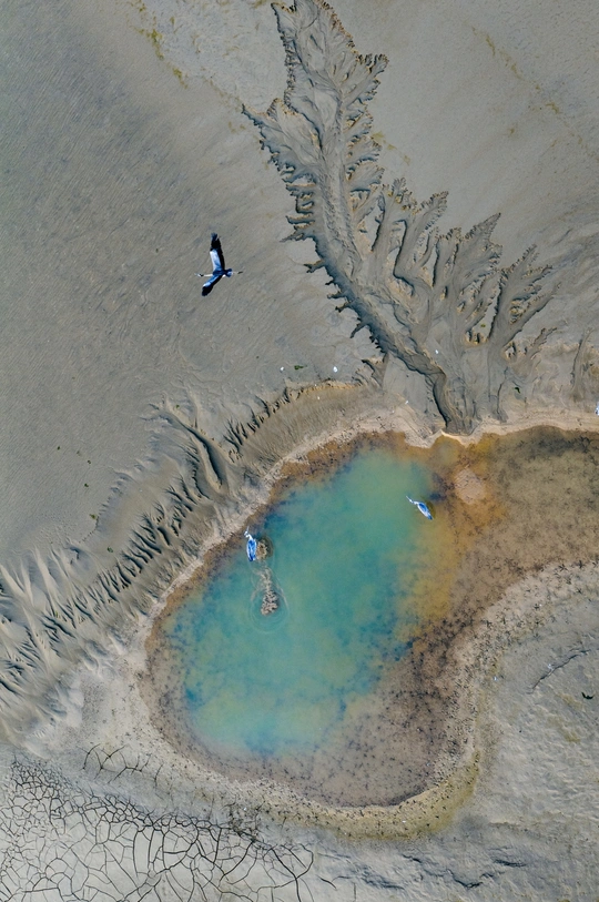 黄河,孟津段,很和缓,有大片的浅滩,很像眼睛。浅滩积水中,苍鹭在休憩,捉虫,嬉戏,飞翔。。。 拍摄时间:2025/07/26 拍摄机型:大疆御4pro 光圈:F2.8 快门:1/161s ISO:200