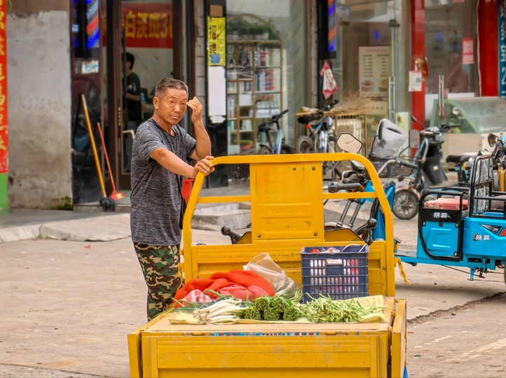 一辆黄三轮,满载鲜蔬,是谋生的依托。街头的平凡营生,没有波澜壮阔,却用踏实,书写生活的篇章