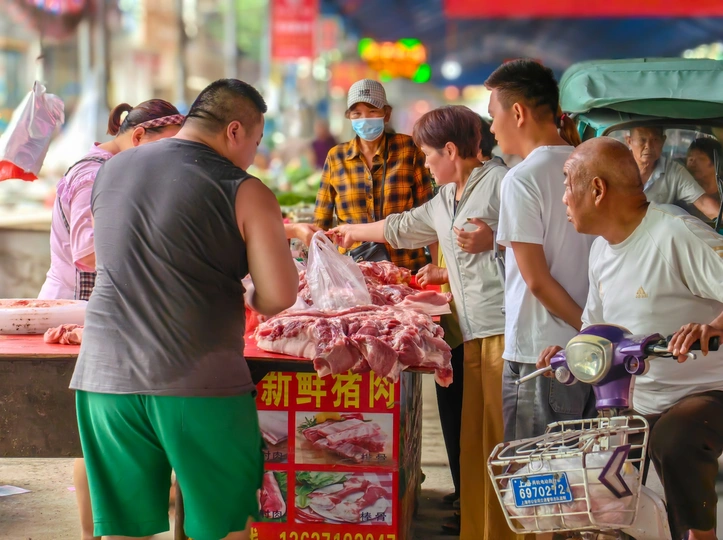 肉摊方寸间,汇聚不同身影。有人精挑细选,有人聊聊家常,百态交织,织就最真实的市井生活网