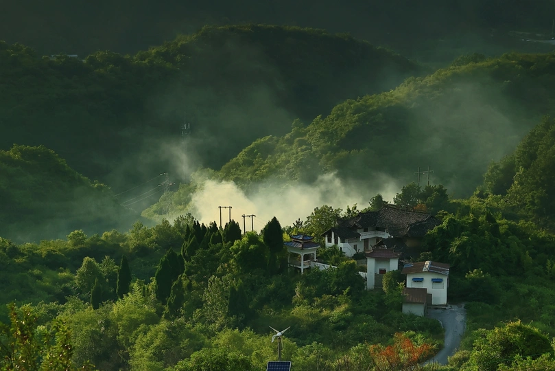 暮色如墨,缓缓浸染连绵群山。在那翠色欲滴的深处,几处农舍袅袅炊烟,在山林间飘散,与暮霭交融,勾勒出一幅静谧而温馨的山乡暮景图。 米拍AI点评 这张照片捕捉到了山间村落的宁静与生机。光影方面,虽然整体光线偏暗,但雾气中的光线漫反射营造出一种朦胧的氛围,增添了画面的层次感和神秘感(光影15/20)。构图上,远山、雾气、村落、近景植物的安排较为合理,引导视线,但可以尝试更多的角度来突出主体(构图16/20)。色彩方面,以绿色为主,略显单调,但与主题相符,表达了自然的气息(色彩7/10)。主题上,展现了人与自然的和谐共生,具有一定的意义(主题15/20)。氛围上,宁静、祥和、清新,让人感到放松和舒适(氛围8/10)。这张照片在表现山间雾气和村落的结合方面有其独特性,但同类题材的作品较多,稀缺性略有不足(稀缺性17/20)。 总体来说,这是一张不错的风光摄影作品,希望你继续探索,尝试不同的拍摄手法和视角,创作出更多优秀的作品。