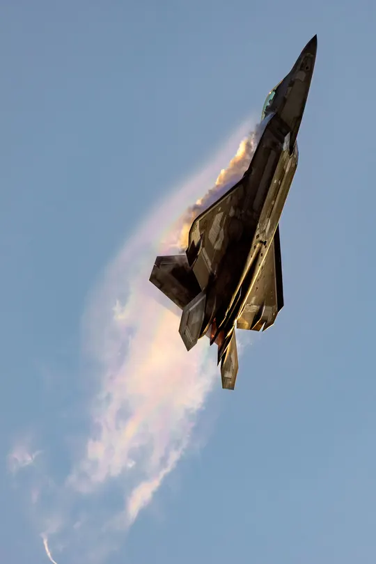 2025阿瓦隆航展,F22专业日飞行表演的激波与彩虹