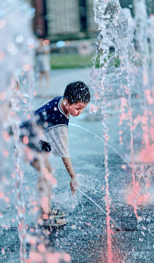 瞧,喷泉边,孩子与水花嬉戏。阳光洒落,水珠闪烁如星,勾勒出夏天独有的灵动轮廓。孩子专注的模样,是与夏日的一场温柔对话。在这里,没有酷暑的烦闷,只有水带来的清凉欢愉。这是夏日的乐趣。