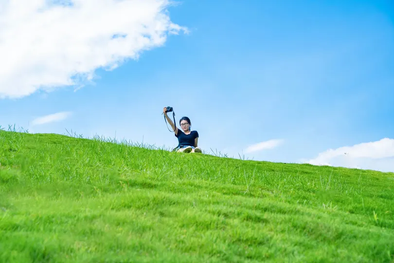 嫩绿的草甸像动漫里的场景! 📍位置:杭州青山湖