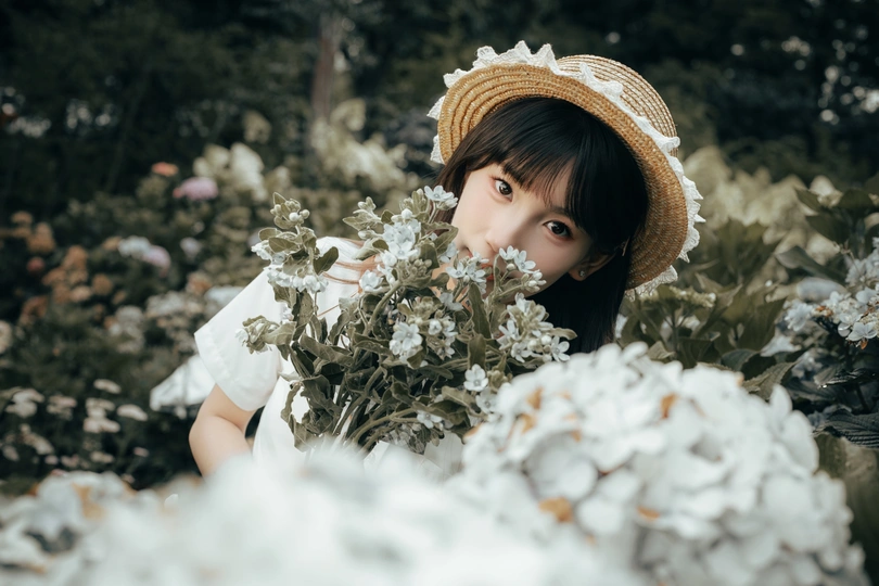 她没有说话,只是悄悄藏进花里, 目光里藏着整场夏天的悸动。 阳光、风、和你,是这个季节最想靠近的秘密。