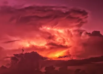 当天文改机的镜头对准九宫山巅的雷暴, 便开启了一场突破人眼边界的观测。紫红色的云瀑如宇宙潮汐般翻涌, 橙黄焰光似地核热能挣脱云牢,雷电的银芒在浓墨云絮里悄然抽芽——这不是普通的气象奏鸣,而是天文改机以窄带光谱为笔,在九宫山夜空铺展的天体狂想。云的褶皱里藏着大气电离的密码, 焰光轨迹续写着光年外恒星爆发的回响,当雷暴的轰鸣与天文的静默在此刻共振,我们终于窥见:原来天地交鸣的刹那,本就是宇宙写给人间的浪漫注脚。