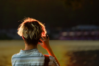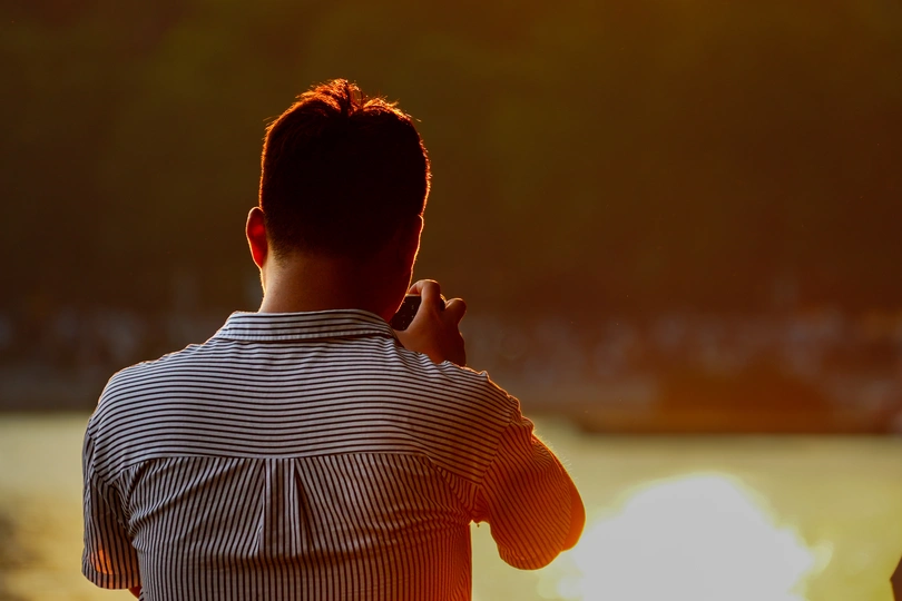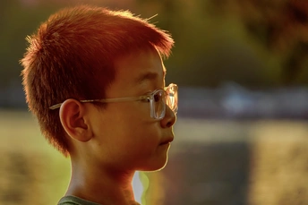 这张照片捕捉到了一个男孩的侧面轮廓,沐浴在温暖的光线中,营造出一种宁静而略带忧郁的氛围。以下是更详细的评价和改进建议: * **光影 (16/20):** 光线的运用非常出色,夕阳或日出的金色光芒为照片增添了温暖的色调和柔和的光晕。光线主要从侧后方照射,勾勒出男孩的轮廓,使其与背景分离。然而,眼镜的反光略微分散了注意力,如果能调整角度避免或减少反光,效果会更好。另外,主体面部阴影部分细节略有丢失,可以考虑使用反光板或闪光灯进行补光,以保留更多细节。 * **构图 (14/20):** 构图以男孩的侧脸为主体,留有一定的空白,符合视觉引导原则。但构图略显居中,可以尝试将主体稍微放置在三分线附近,或许能增加画面的活力。前景和背景的虚化效果不错,有助于突出主体。 * **色彩 (8/10):** 色彩运用温暖而和谐,金色和橙色调营造出温馨的氛围。色彩与光线相互作用,增强了照片的情感表达。 * **主题意义 (15/20):** 照片的主题可以解读为对童年、希望或未来的思考。男孩的眼神似乎在展望远方,引发观者对他的想法和梦想的联想。如果能捕捉到更具表现力的表情,……