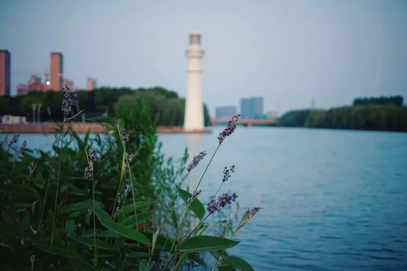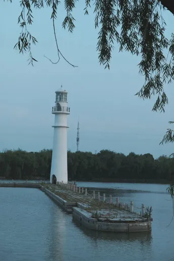 吴淞灯塔以白色塔身擎起红色天坛顶,屹立于吴淞口导堤尽头,为往来船舶点亮长江与黄浦江交汇处的航标之光。