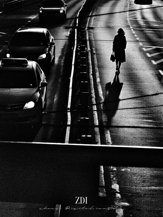 车一辆接一辆往前蹿,谁也不等谁。只有影子老实,贴在地上跟着走……