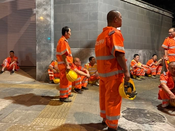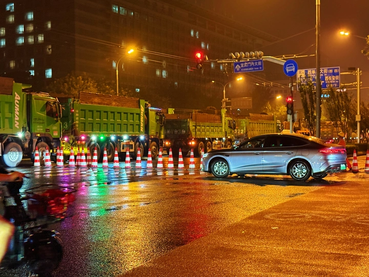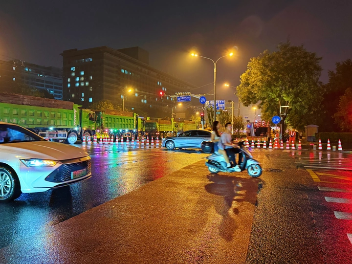 北京市正在展开道路维修养护,工人们和大型机械车辆晚上10点以后进场,凌晨撤出。