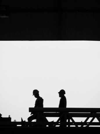 这张黑白摄影作品展现了两位工人的剪影,整体效果简洁而富有力量。以下是更详细的评价和优化建议: **光影 (16/20):** 光线运用到位,高对比度的黑白影调突出了工人的轮廓,营造了鲜明的视觉效果。大面积的白色背景使剪影更为突出。可以尝试寻找更具戏剧性的光线角度,例如日出或日落时分的侧光,以增加画面的层次感和氛围。 **构图 (14/20):** 构图相对简单直接,主体位于画面下方,上方留白较多。可以尝试将地平线放置在三分之一处,或者调整拍摄角度,使画面更符合三分法或黄金分割的原则。注意前景、中景、背景的结合,避免画面过于空旷。 **色彩 (8/10):** 黑白影调简洁有力,避免了色彩干扰,更专注于光影和形态的表达。如果拍摄彩色照片,需要注意色彩的搭配和运用,使色彩服务于主题和情感表达。 **主题意义 (16/20):** 作品通过工人的剪影,表现了劳动者的辛勤和付出,具有一定的社会意义。可以进一步挖掘主题的深度,例如表现工人的精神面貌、工作环境的艰苦等,使作品更具感染力。