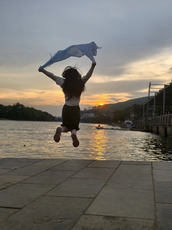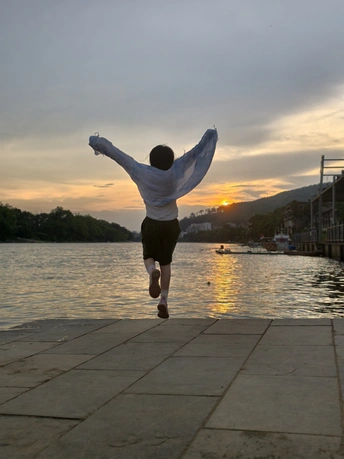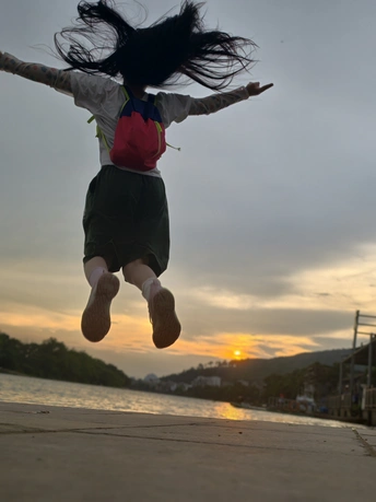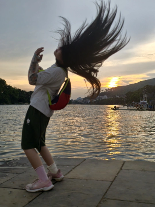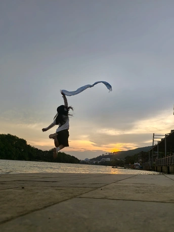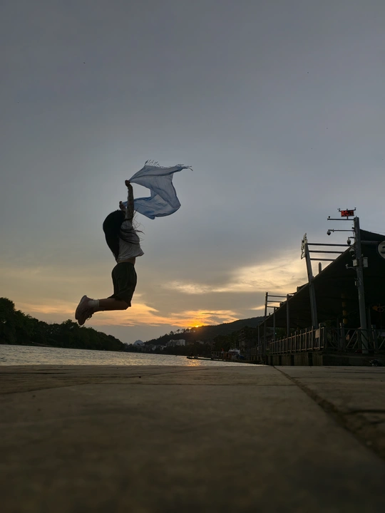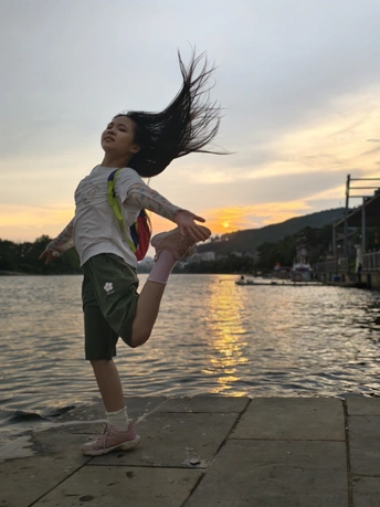 2当暮色为幕,我以江河为舞台。纵身跃起时,发丝缠上晚霞,丝巾牵住落日,这是独属于我和夕阳的即兴共舞 ……