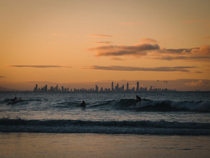 这里是澳洲的黄金海岸,日落前夕,浪的形态因为潮汐产生变化,可能是冲浪爱好者们的极品timing。远处的市区几乎全部呈现在这个角度,我静静地等了一群飞鸟,记录下这一张天、地、海、人类、动物与城市的合拍。 Exif Hasselblad X2D 100C XCD55V F2.5 ISO 100 1/1000s