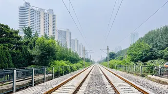 铁轨向前,一头系着城市的喧嚣,一头连着自然的宁静,像条沉默的时光线,把人间烟火与绿野清新,串成生活的诗行✨