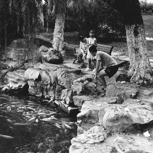 老相机铜身泛着旧光,对准五十年前的公园,镜头里,的确良衬衫飘在绳上,红领巾少女仍意气风发,水池中的鱼儿还在欢快地歌唱,二八车碾过月亮桥上的青砖,快门落下的瞬间,把此刻与往昔,一并锁进胶片,把我带回到那个快乐的童年时光…