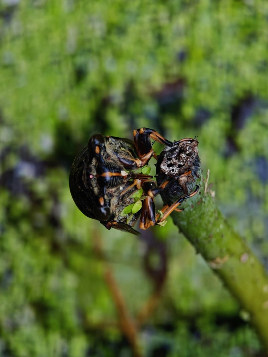 残荷垂首,枯枝如剑,蝉却将其紧拥为生命的图腾。夏日的余温在枝头凝固,蝉鸣成了最后的倔强——原来枯萎里,也能蛰伏着破茧的信仰。