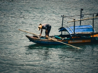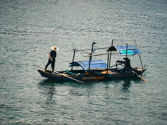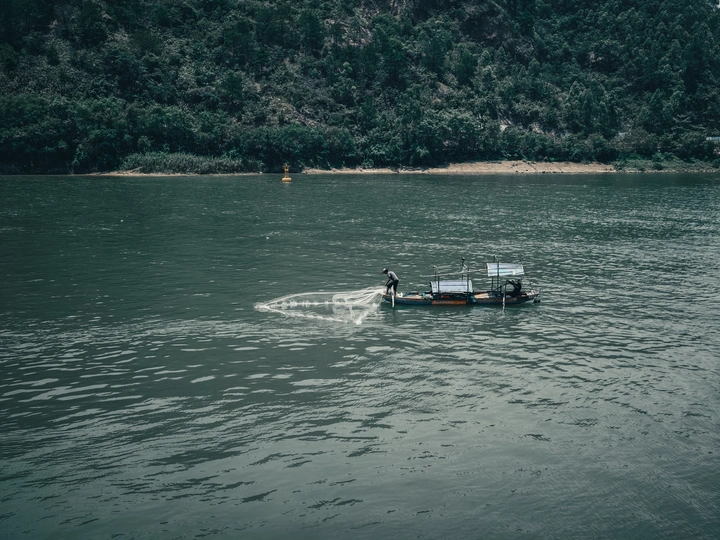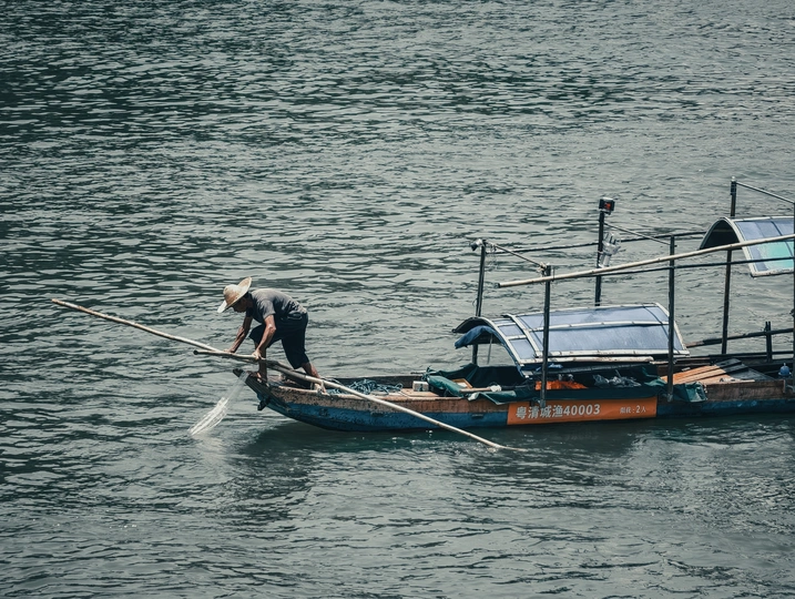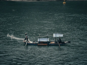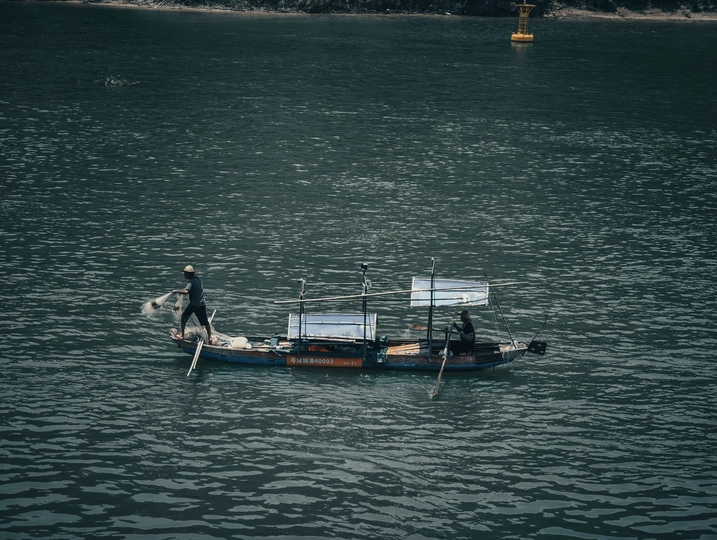 当清晨的第一缕阳光洒在宁静的水面上,渔船如同一位沉默的旅人,缓缓地从码头驶出,开始了一天朴实无华的捕鱼生活。船身的蓝色,在阳光的照耀下,显得格外柔和,仿佛是大海赋予他们的保护色。 船上的两位渔民,头戴草帽,那草帽就像是他们生活的保护伞,遮挡着烈日和风雨。他们的眼神中透露出一种对生活的坚定和执着,没有过多的言语,只有默默的行动。一位专注地手持工具,像是在和大河进行一场无声的交流,每一次的操作都充满了对生活的敬畏;另一位握着船桨,有节奏地划动着,那有规律的声响,仿佛是生活的乐章。 在这广阔的水面上,他们的生活就像一首平淡却又动人的诗。没有华丽的辞藻,没有跌宕起伏的情节,只有日复一日的劳作和对生活的热爱。他们用自己的汗水和坚持,诠释着朴实无华的真谛,在这片看似平凡的水域里,创造出了属于自己的美好世界。