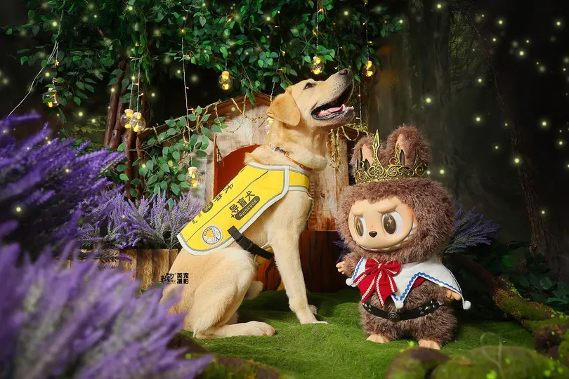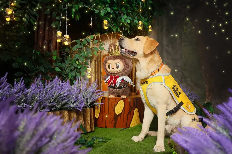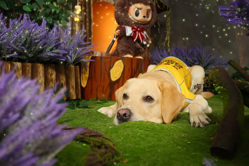 这孩子笑起来真好看 一看工作服,竟然是导盲犬! 失敬失敬