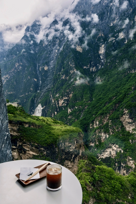 眼前是层峦叠翠、云雾缭绕的磅礴峡谷,手边是一杯沁凉的冰饮。喧嚣被山风隔绝,思绪随流云飘荡,这一刻,自然是最慷慨的馈赠,把宁静与壮阔,都装进这方天地