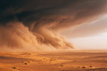 「AI作品」在这片广袤无垠的沙漠中,一场壮观的沙尘暴正悄然袭来。画面中,厚重的乌云低垂,仿佛巨大的帷幕遮蔽了天空,带来一种压迫感和神秘感。沙尘在狂风的驱使下,卷起漫天黄沙,形成了一道道波澜壮阔的沙浪,气势磅礴,令人震撼。 远处的地平线模糊不清,沙尘弥漫在整个视野之中,给这片荒凉的土地增添了几分苍凉与壮美。近处的沙丘起伏不定,稀疏的植被顽强地生长在沙砾之间,展现出生命的坚韧与不屈。 这幅画面不仅展现了大自然的雄伟与力量,也让人感受到人类在自然面前的渺小与脆弱。每一次沙尘暴的来临,都是大自然的一次宣示,提醒着我们敬畏自然、保护环境的重要性。在这片浩瀚的沙漠中,每一粒沙子都在诉说着古老的故事,每一道沙浪都在演绎着生命的奇迹。
