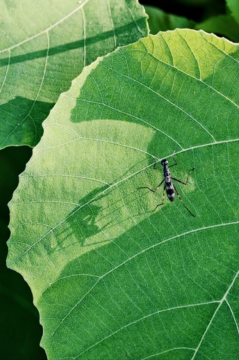 晨光漫过叶片,脉络如光阴小径。小昆虫们或敛翅小憩、或停歇驻留,触须轻颤,与叶尖露珠相语。在微观世界里,生命的呼吸与自然的脉动,在此刻同频。