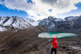 此片拍摄于【嘎德阶湖】,这个高山湖泊海拔46666米,往这里走的路都是碎石子路且非常险峻,这里就像世外桃源一样,人很少,景色迷人。