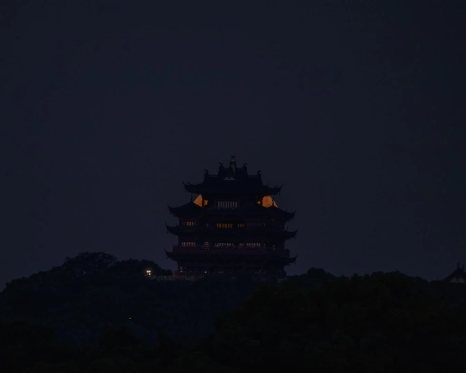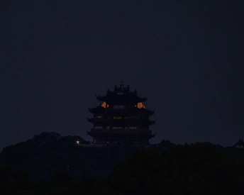 夜幕为笺,城隍阁化作墨色剪影,静立山巅。一轮满月悄然自楼阁背侧探升,橙润月华透过飞檐与窗棂漫溢,如碎金洒落在黑缎般的夜。古建的层叠轮廓与漏泄的月光缠绵,将时空晕染成一幅留白的画——往昔的风烟与今宵的清辉,在明暗交错间,诉说着东方意境里独有的幽寂与苍茫 。