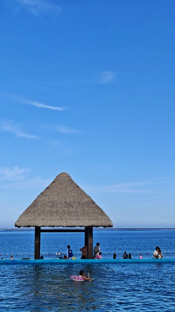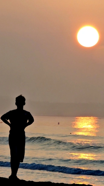 克莱因蓝的天与海,日月同在。五彩斑斓的贝壳、鹅卵石衬托着金黄色的沙滩,光着脚丫,吹着咸味的海风,听听浪花的诉说!