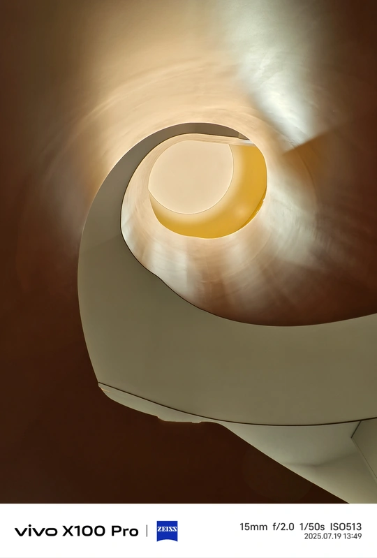 vivo X100 Pro 捕捉杭州浙图螺旋楼梯的空间诗行:曲面流转如时光涡旋,光影在弧度间晕染呼吸。从局部的暖调涟漪,到全景的层叠延伸,每一圈旋绕都交织着建筑的秩序与自然的生机,镜头定格的不仅是结构,更是空间里流淌的韵律与哲思 。 @闻远手机摄影互关