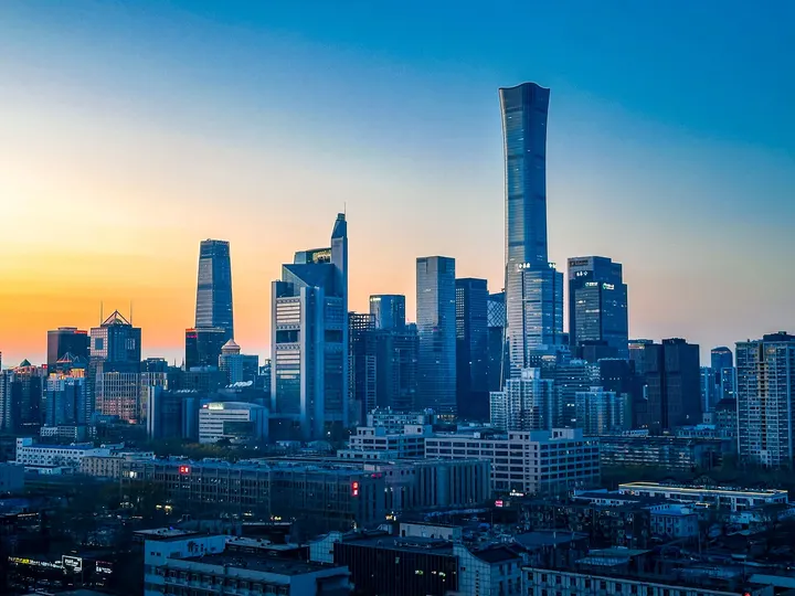 暖橙与靛蓝交融的天空,如巨大的天然幕布,衬托着林立的CBD楼群。建筑以硬朗线条勾勒轮廓,在光影变幻中,诉说着城市的繁华与蓬勃朝气,每一寸明暗都藏着都市的昼夜故事,是自然与人文共绘的时代剪影 。