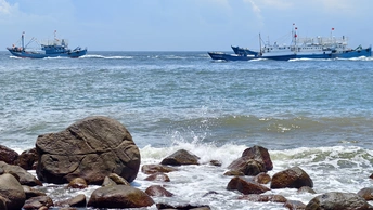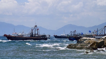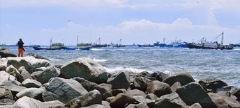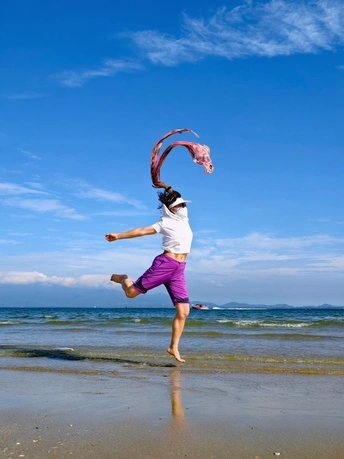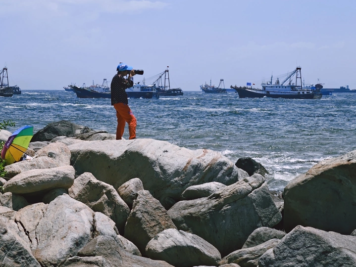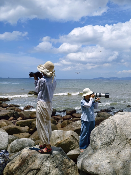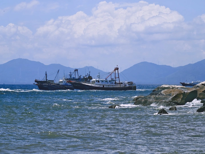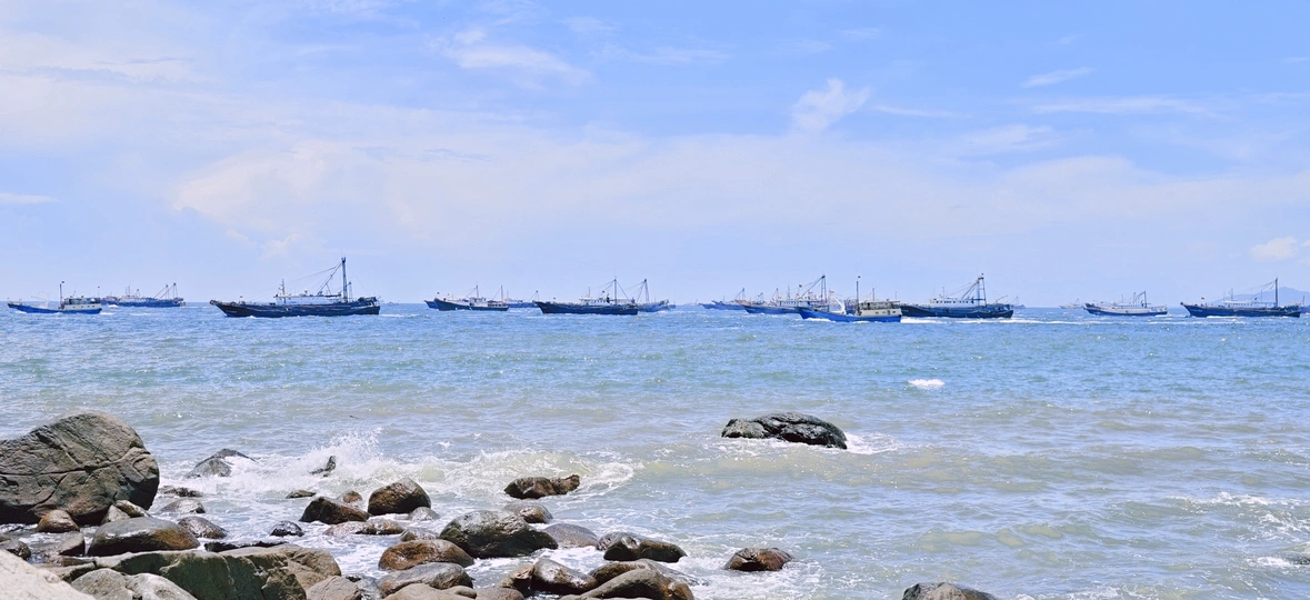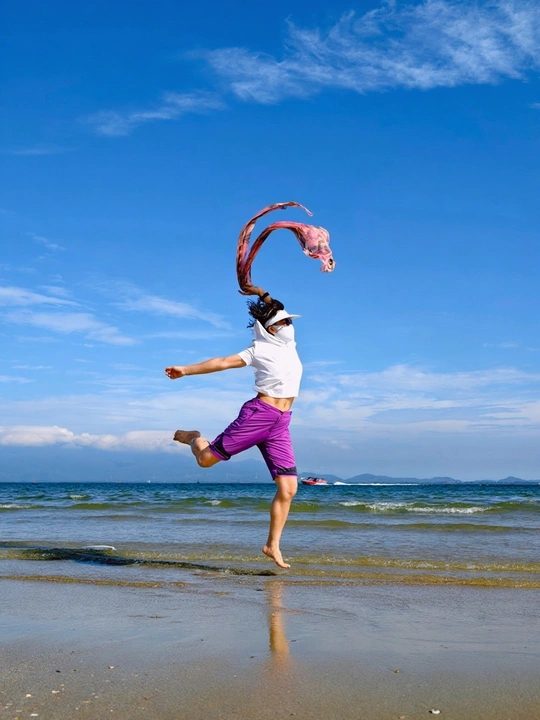 开渔节这天,渔港从清晨便热闹非凡。镜头里,渔民们整装待发,船只排列整齐,像即将出征的战士,一上午的期待在空气里渐渐蒸腾。 正午的阳光把渔港晒得发烫,忽然间,烟火骤然炸开在晴空,金红碎屑簌簌落向海面。随着信号响起,早已整装的渔船应声而动,队列如银箭破浪,船身的彩绘在阳光下泛着亮泽。按下快门,渔船如离弦之箭驶向大海,激起的阵阵浪花在画面里鲜活跳跃,渔民们立在船头挥手,引擎声混着岸上的欢呼漫过堤坝。 有人同我一样举着相机,镜头追着船尾的白浪,将这场盛大出发锁进取景器。海风里满是对丰收的期盼,烟火余烬还飘在风里,而大海已在远方敞开怀抱,迎接这场与渔获的约定,等一场沉甸甸的归航。 这海的故事,在沙滩的纹路里,在浪花的欢腾中,在每一次与海风的相拥里,更在我看向取景器时,满心的欢喜与雀跃中。