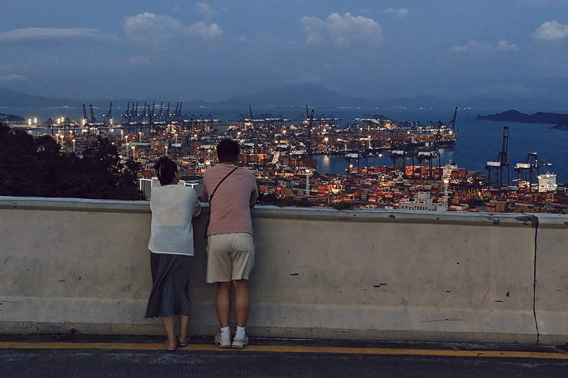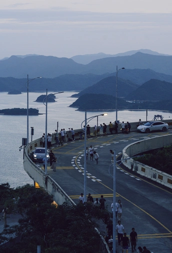 坐在环山护栏上吹着海风 等着蓝调来临 海港和夏夜一样温柔