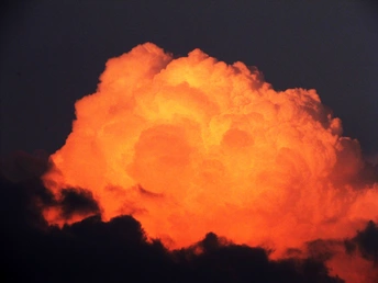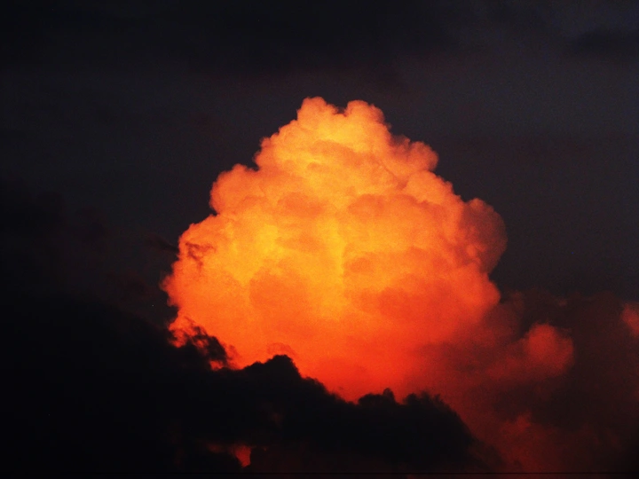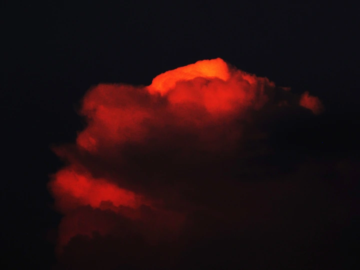 夕阳的余晖照在东方的积云之上,为它们染上火红的颜色,倏忽,太阳下山,红云消失了。