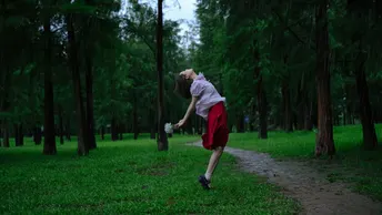 我们习惯了低头行走,习惯了被重力束缚。但在这一刻,雨中的她选择了对抗。茂密的树林是沉默的观众,葱郁的草地是柔软的舞台。细雨纷飞,不是阻碍,而是催化剂。一股源自内心的冲动驱使她奋力跃起,舒展身体,仿佛要挣脱大地的引力,去拥抱那落下的天空。手中的花束是献给自然的礼赞,仰起的脸庞写满了无畏的欢愉。红裙在沉静的绿意中燃烧,象征着生命最原始的热情与活力。这张照片不仅记录了一个跳跃的动作,更捕捉了人类精神追求自由、拥抱未知的永恒瞬间。它提醒我们,有时,只需要一场雨,一次抬头,一次纵身,就能触碰到飞翔的感觉。