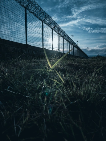 云南的一隅,带刺的铁丝网划出冷硬的边界轮廓,脚下的草叶却在微光里倔强舒展。冷硬屏障与柔软生机在此共生,似在默默诉说着这片土地上沉默又坚韧的生命故事。