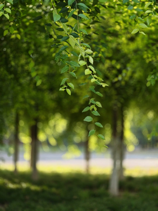 这满树的绿啊,是夏天实打实给的礼物 枝头叶子沉甸甸垂着 风一吹,窸窸窣窣像是在唠嗑 阳光从叶缝里钻进来,把热劲儿都揉软了 往树影底下一站,呼口气,浑身都跟着清凉 树干老老实实立在那儿 跟个不爱说话的守护者似的,把满枝的翠生生都托住 叶子缠着枝桠,光在树里晃悠 这棵树啊,把夏天的那些故事 全藏进叶子的脉络里啦