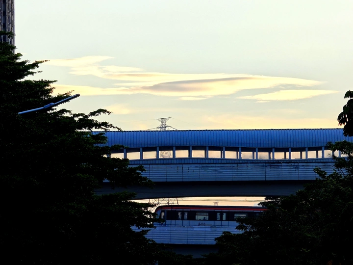 暮色漫染天际,列车穿梭于城市脉络。高架如桥,串起楼宇与树影,云朵在远方晕开温柔。平凡日常里,这帧画面藏着时光的静与动,是城市黄昏独有的浪漫序章 。