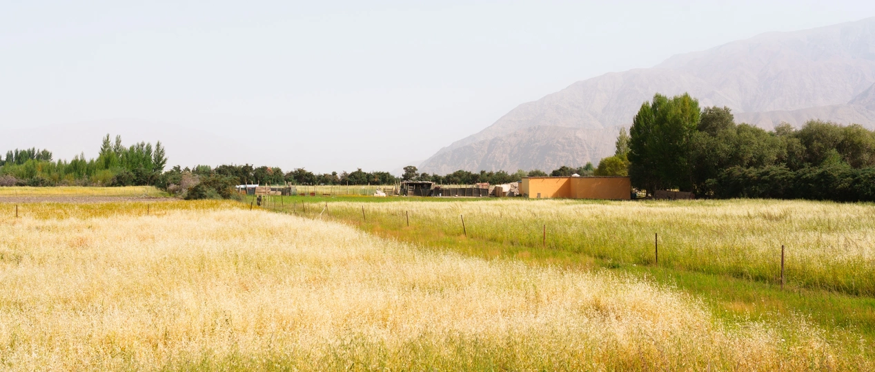 金草滩顶的村落,低矮方正的小房子坐落在初泛秋色的田野上,阳光把整个村子照得金灿灿的。