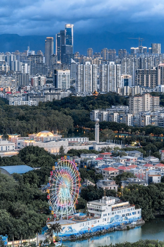 傍晚时分,在高处邂逅这座城的浪漫。摩天楼群与远山相融,摩天轮流转着童话色彩,游船静泊,晕染出温柔光晕。自然、繁华与童趣交织,每一眼,都是生活写给这座城的诗意情书。